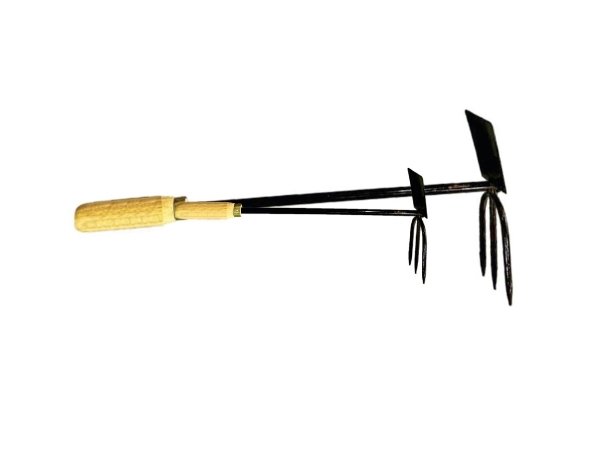 IM Garden Hoe is a multipurpose tool designed for digging, forking, and soil preparation. Suitable for garden and agricultural use with a strong steel head and wooden handle.